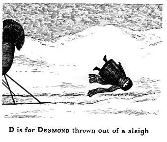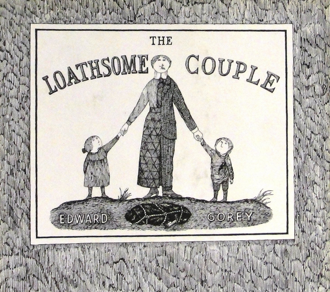 The Gashlycrumb Tinies (1963), an alphabet book which for each letter reveal how children of the story died (see pictures below). The Loathsome Couple (1977), inspired by the Moors Murders. The story of a couple who murdered children. In 1977 Edward Gorey was also in charge of the costumes and scenic design for the play Dracula in Broadway. In 1980, he created the animated opening sequence of the TV show Mystery!.